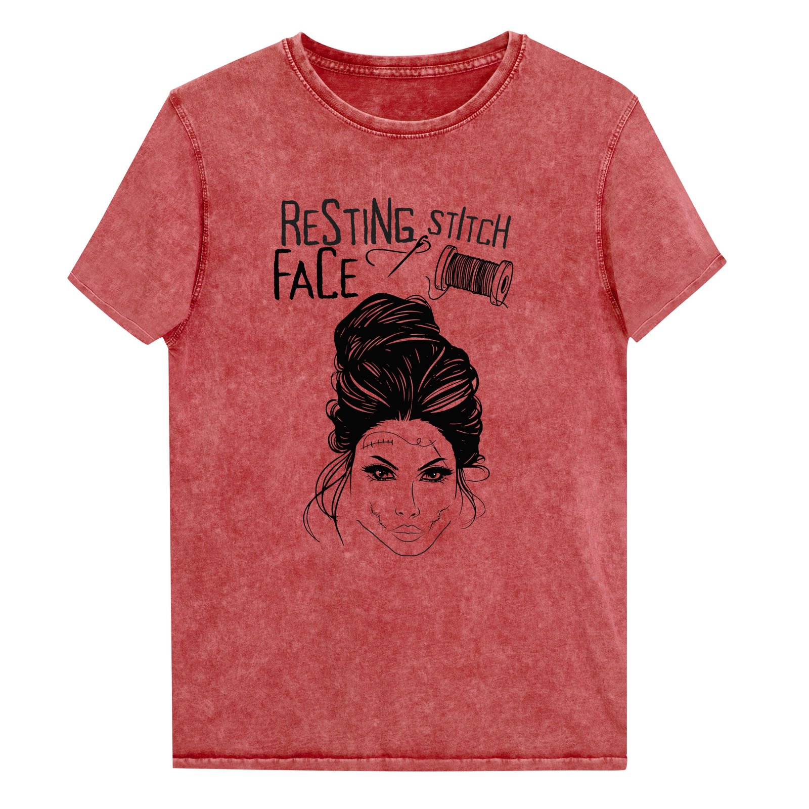 Halloween Funny – Resting Stitch Face Denim T-Shirt