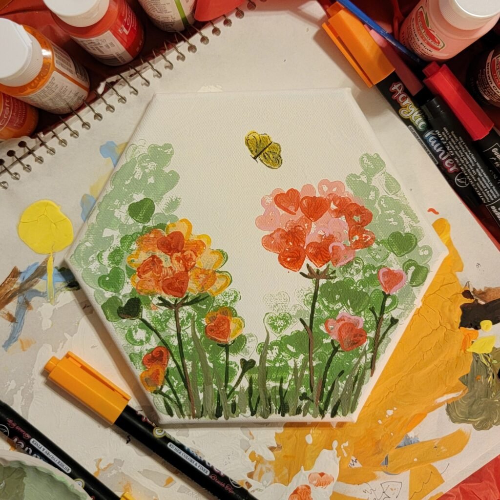 Using paint markers, I added small highlights to a few petals—just enough to catch the eye and give the painting a soft glow. Those tiny details brought all the layers together.