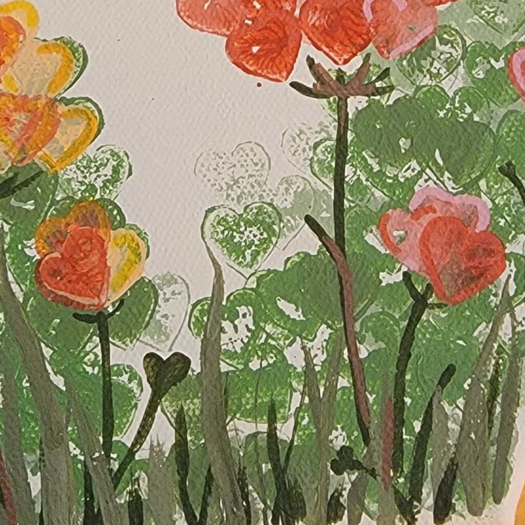 This painting began with a heart stamp—not a plan, not a sketch, and definitely not perfection. Just a stamp, a little paint, and clean canvas.
